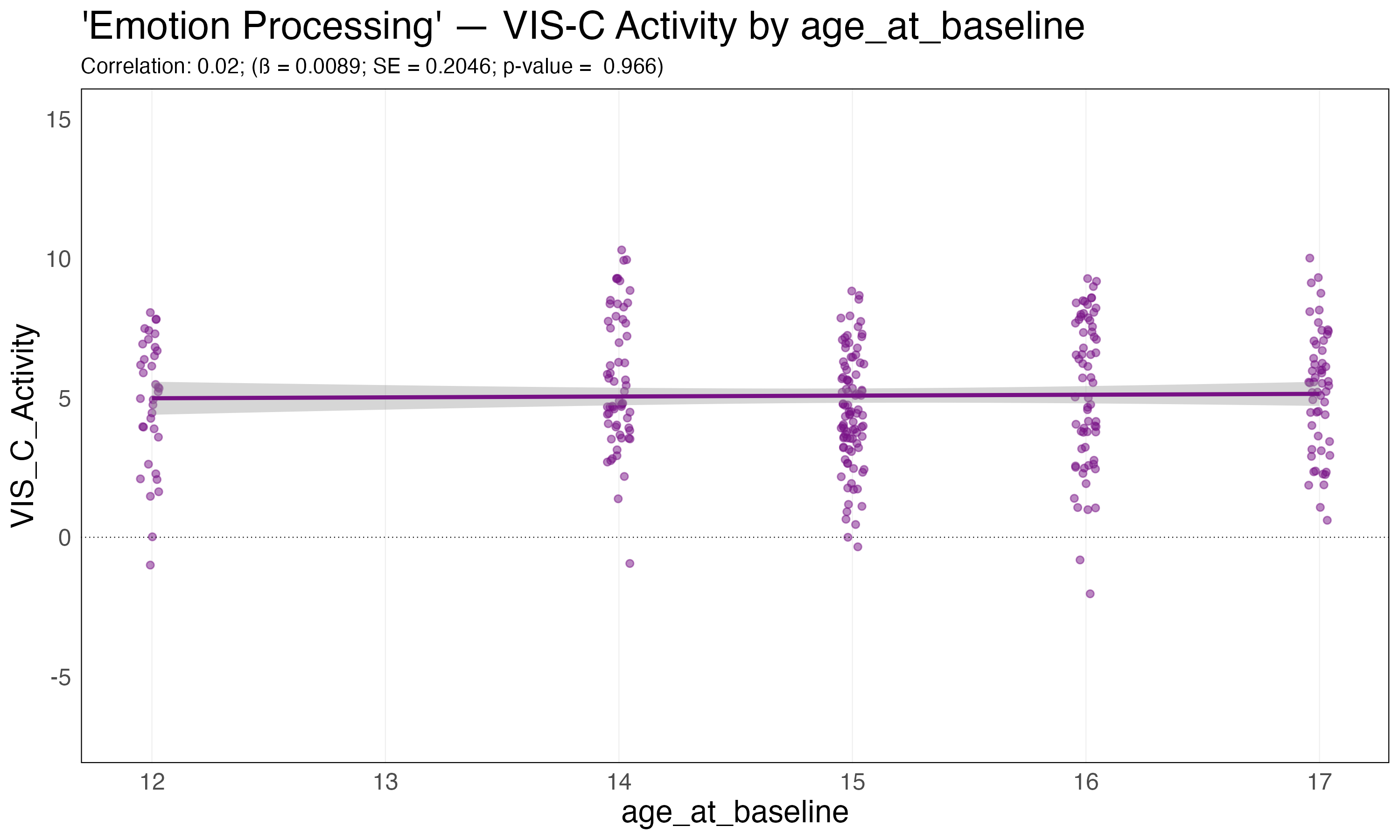 Visual-Central Network (VIS-C). There was no significant effect of age on “emotion processing’ activity within visual-central network (VIS-C) (b = 0.0089, SE = 0.20, p = 0.97).