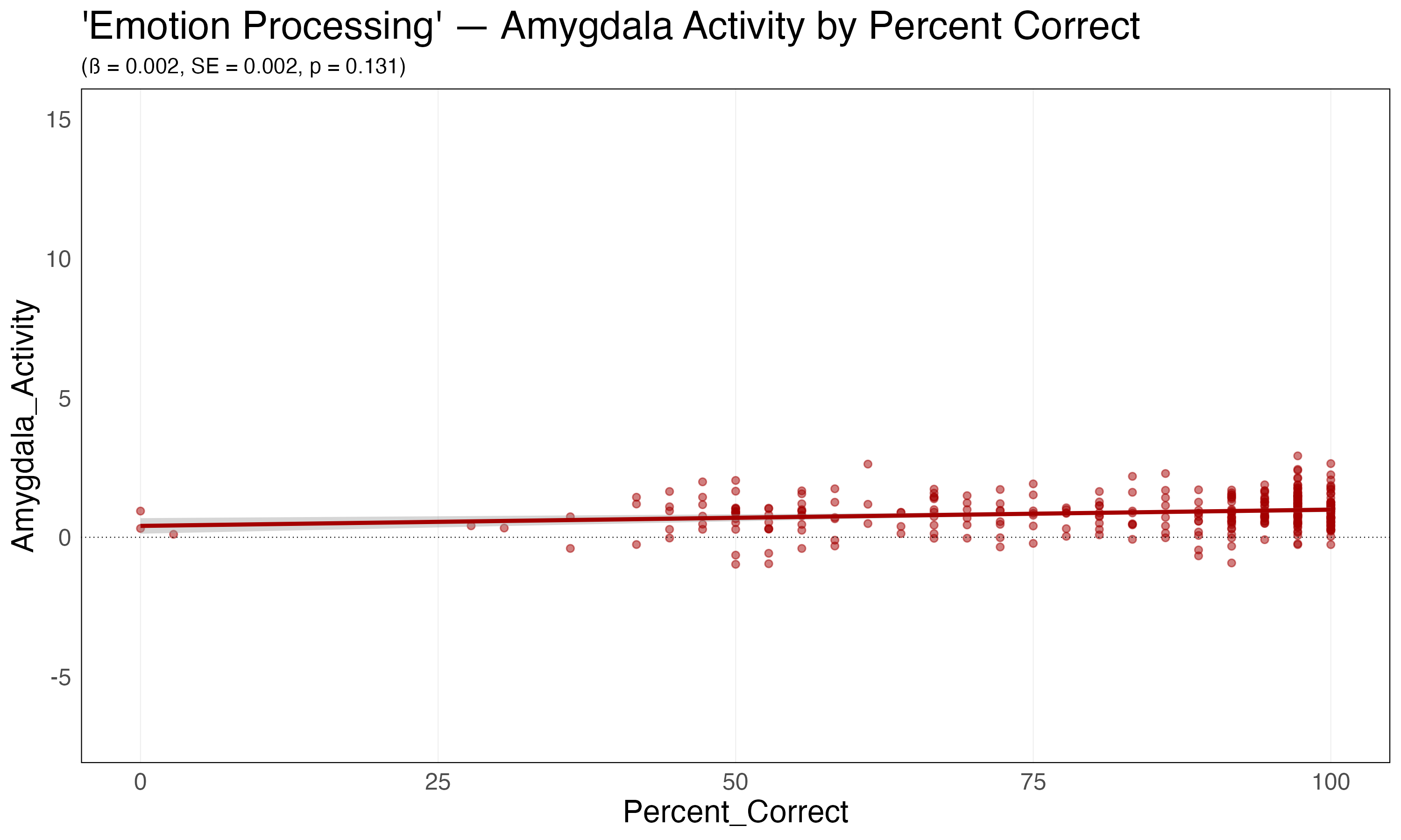 Amygdala. Amygdala activity was not associated with task accuracy (b = 0.002, SE = 0.002, p = 0.13).
