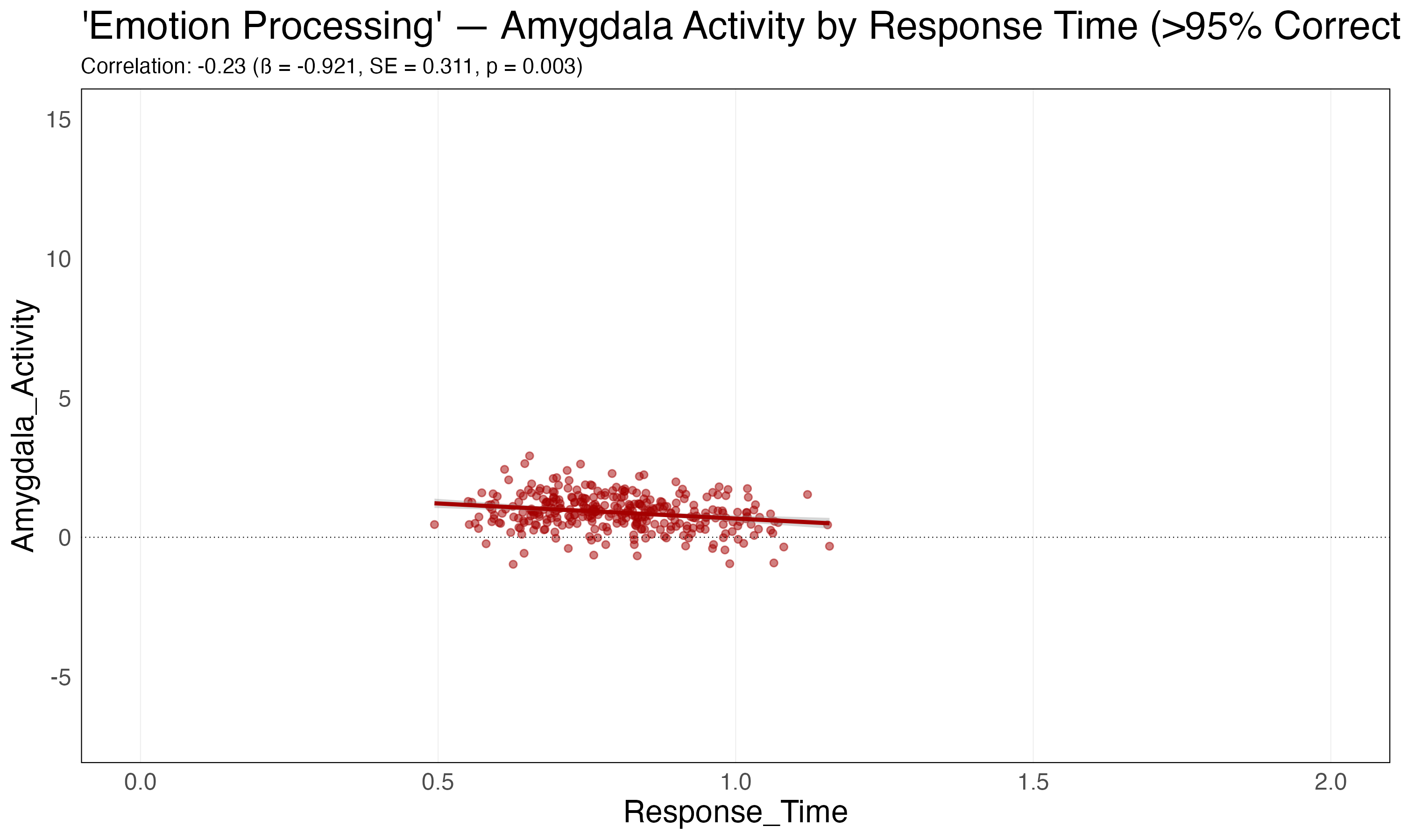 Amygdala. Amygdala activity was negatively associated with response time, such that faster response time was associated with higher activity (b = -0.92, SE = 0.31, p = 0.0003)