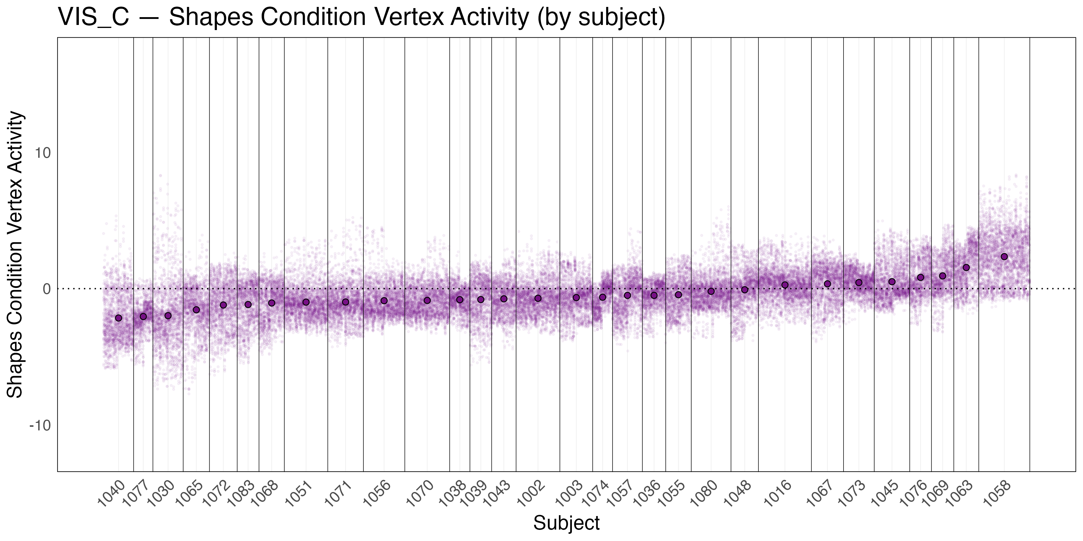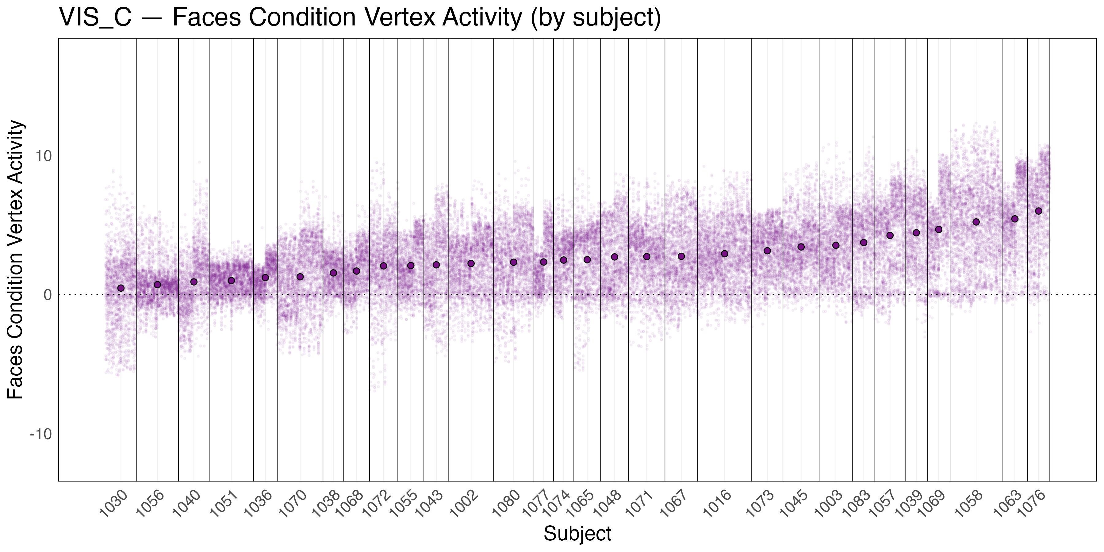 - Section 1: A visual examination of the vertex-level activity for a set of sessions from a subset of the highest quality subjects.