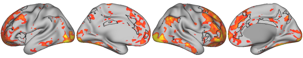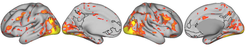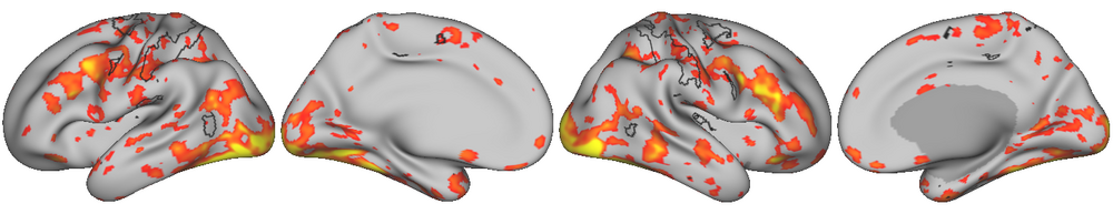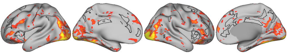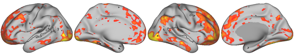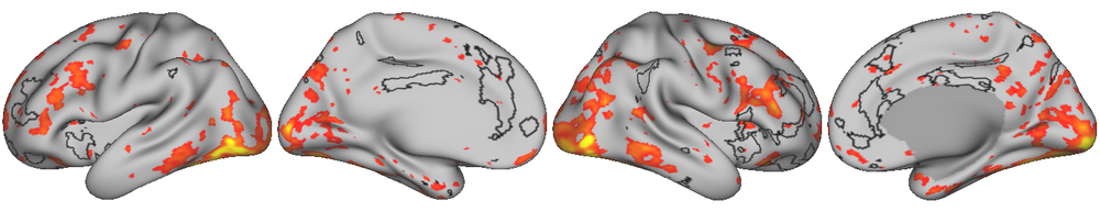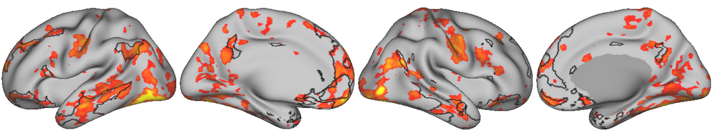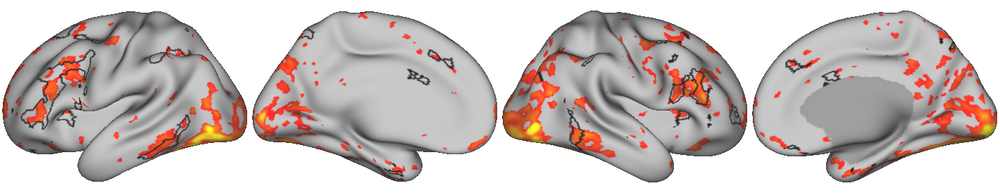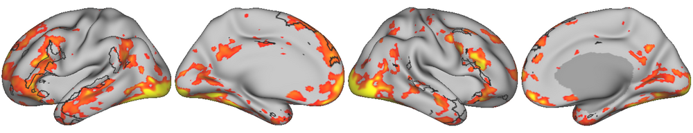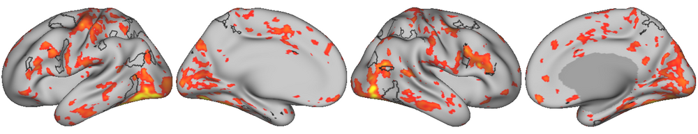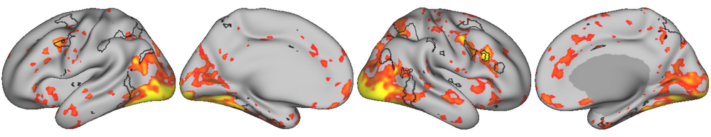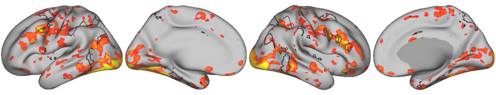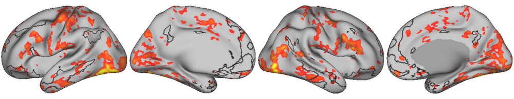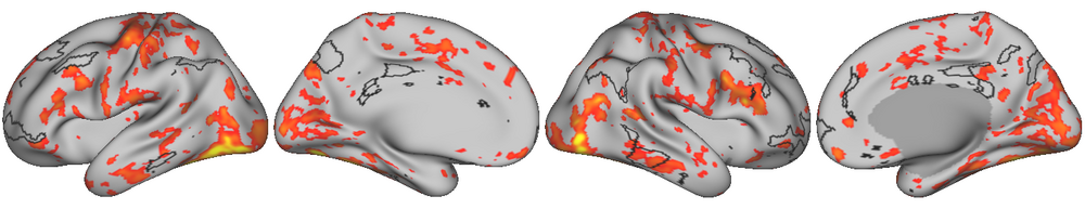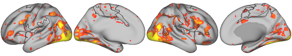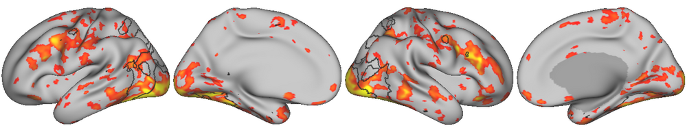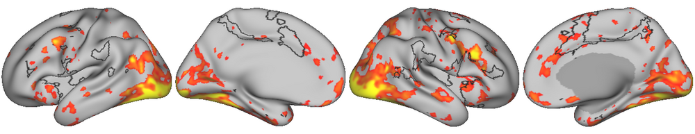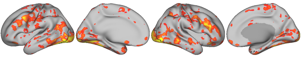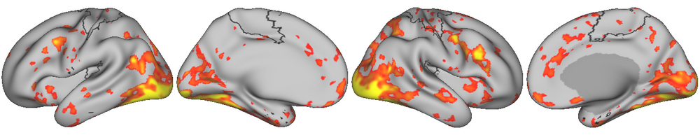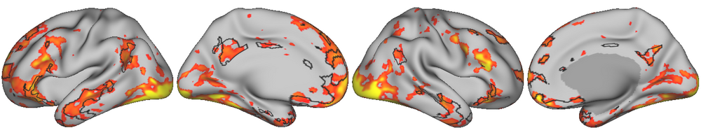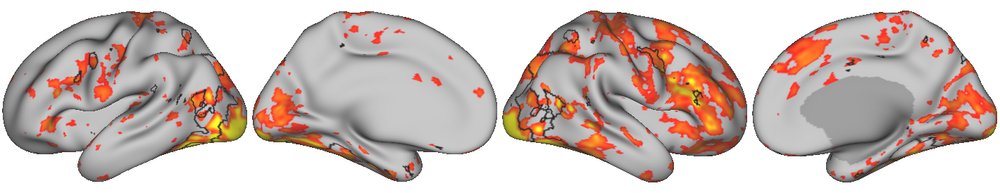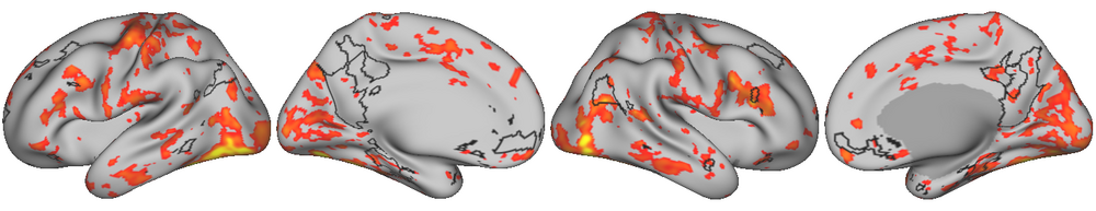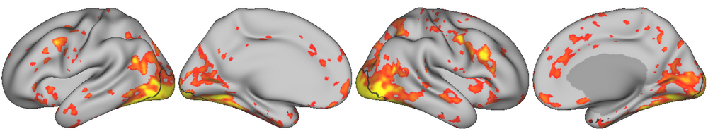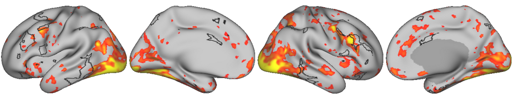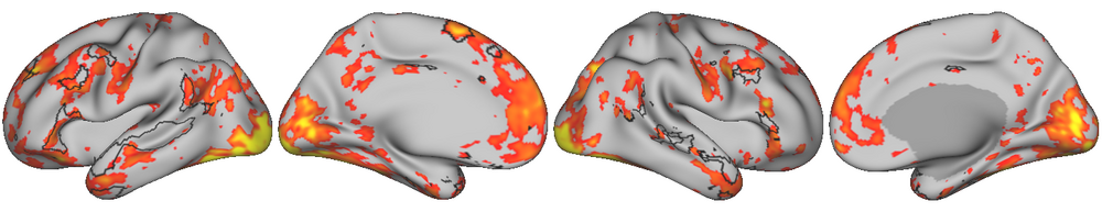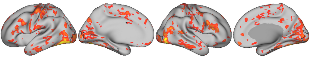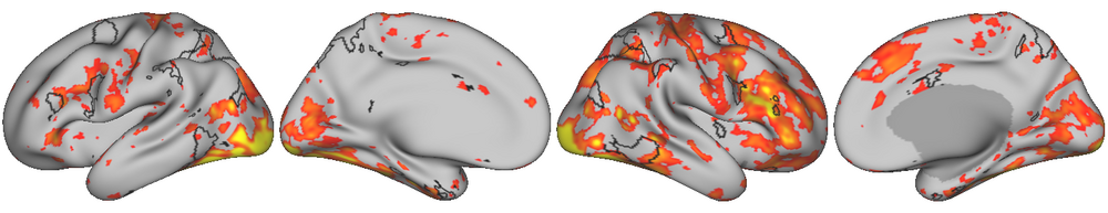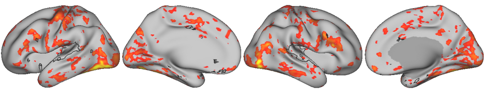 In summary, the above examples visually demonstrated significant network-level activity appears to be underscored by a global increase in activity across most if not all of the vertices in the network. In section 3, this visual observation will be quantified by calculating the proportion of vertices that exhibit activity greater that 0, however this visual illustration provides an initial piece of evidence to suggest that activity is occurring at the network-level during ‘emotion processing’. Furthermore, the observed activity was well circumscribed by the network boundaries, strikingly so given that the network boundaries were established using an entirely independent data set.