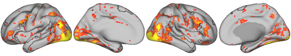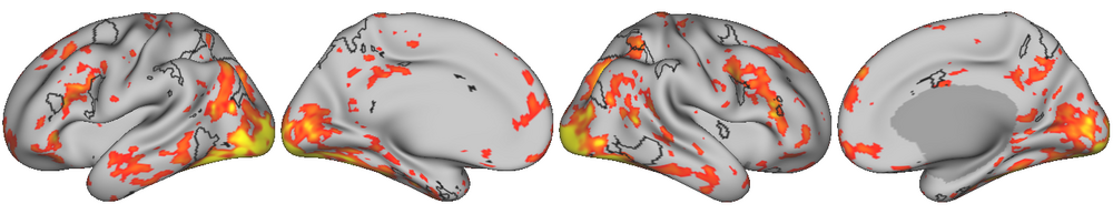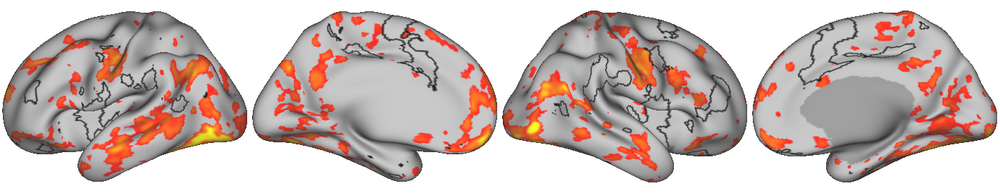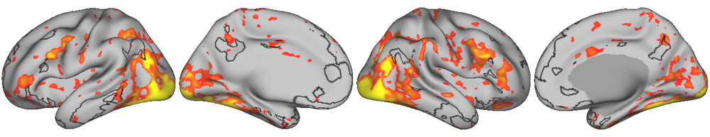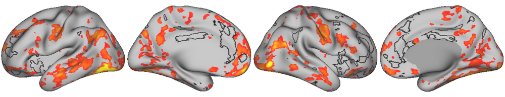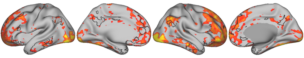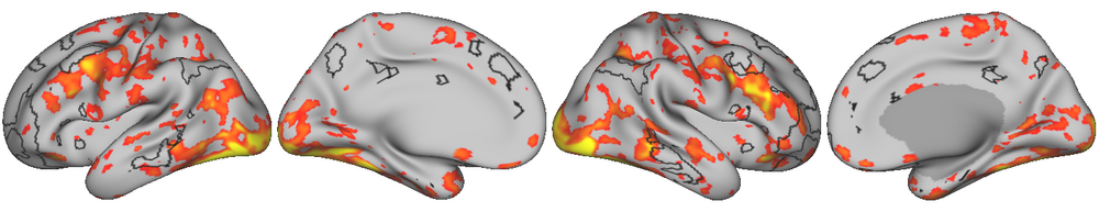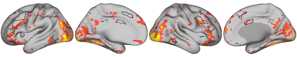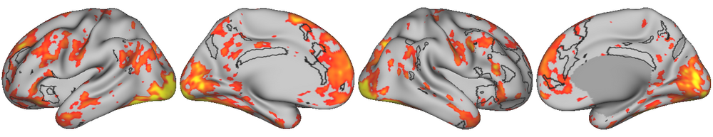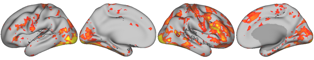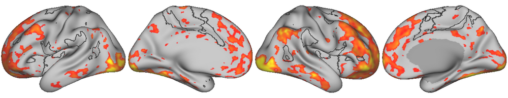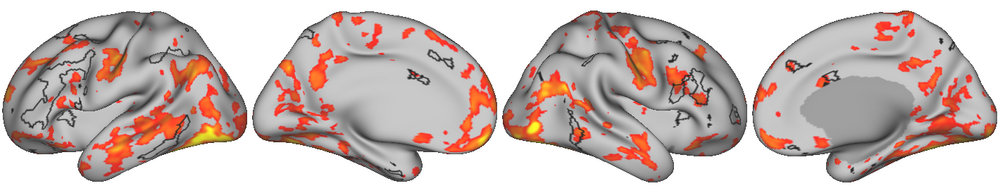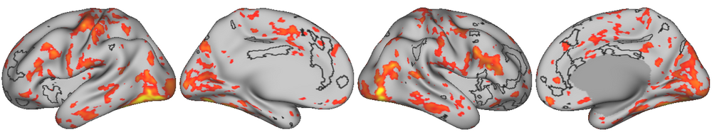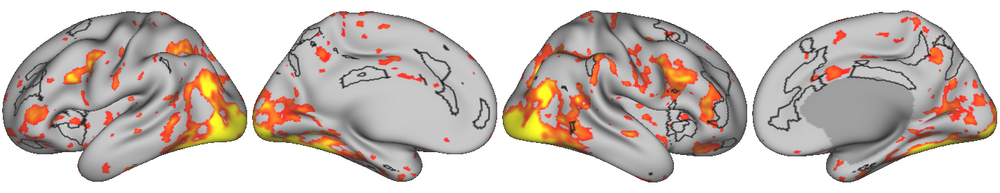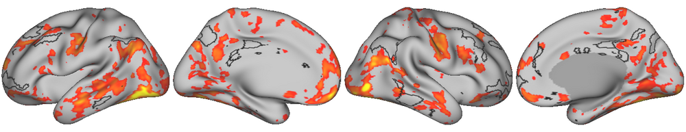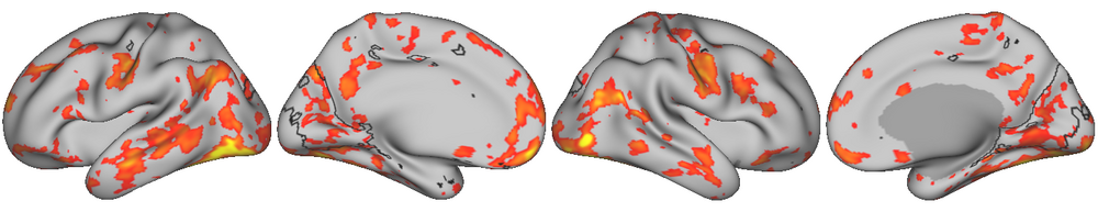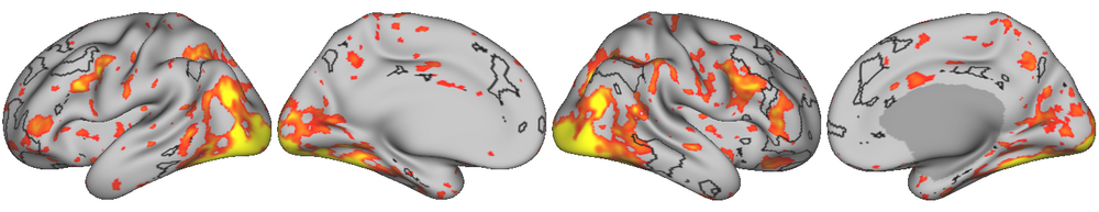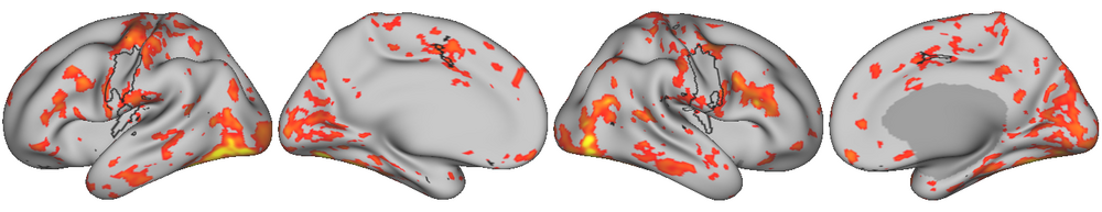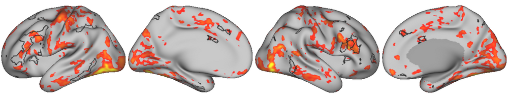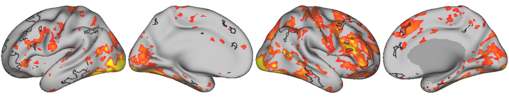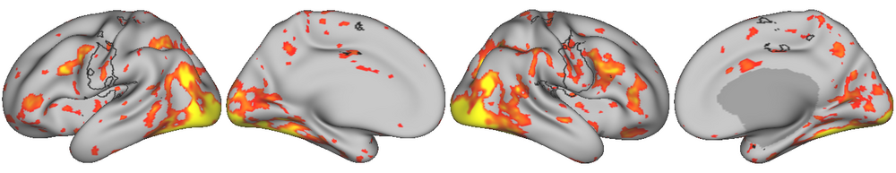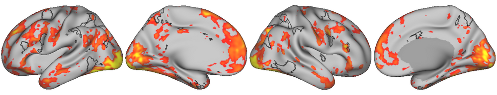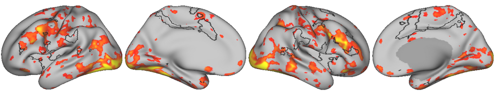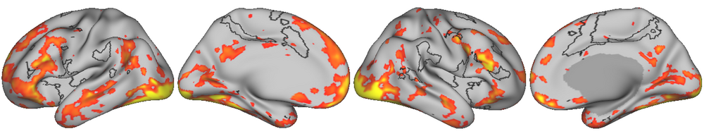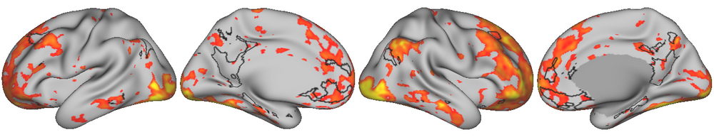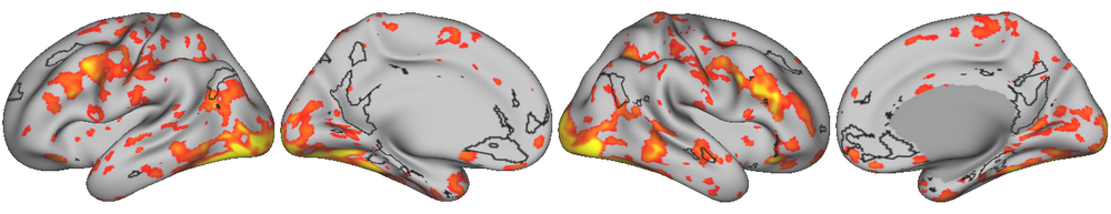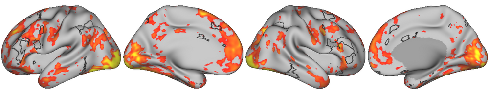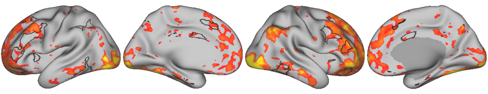 In summary, the above examples visually demonstrated significant network-level activity appears to be underscored by a global increase in activity across most if not all of the vertices in the network. In section 3, this visual observation will be quantified by calculating the proportion of vertices that exhibit activity greater that 0, however this visual illustration provides an initial piece of evidence to suggest that activity is occurring at the network-level during ‘emotion processing’. Furthermore, the observed activity was well circumscribed by the network boundaries, strikingly so given that the network boundaries were established using an entirely independent data set.