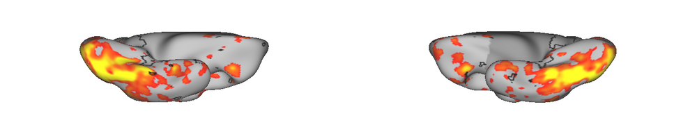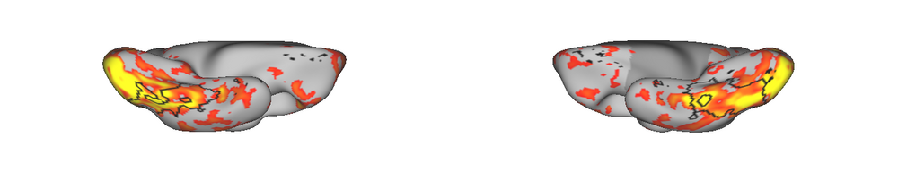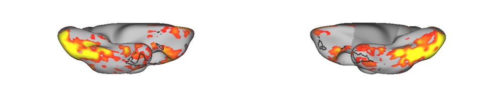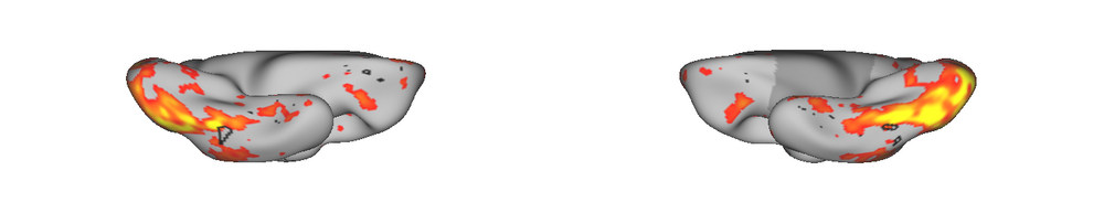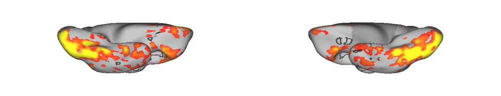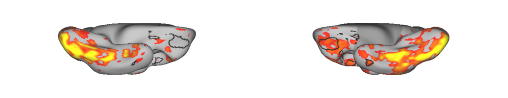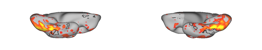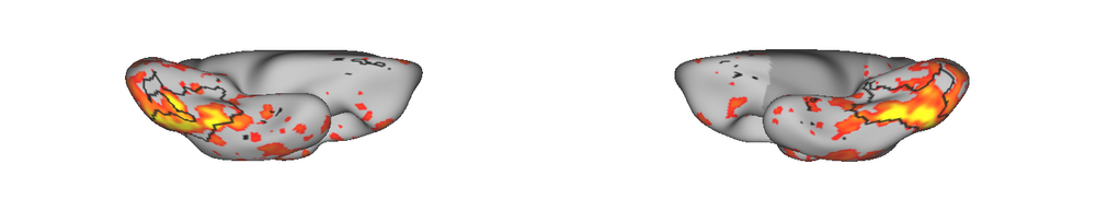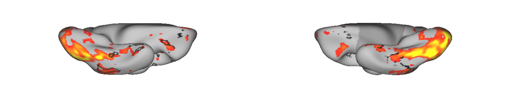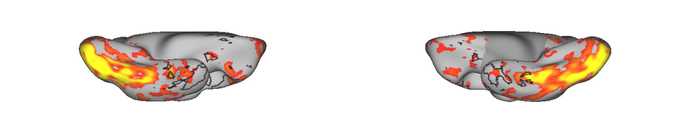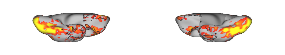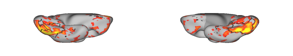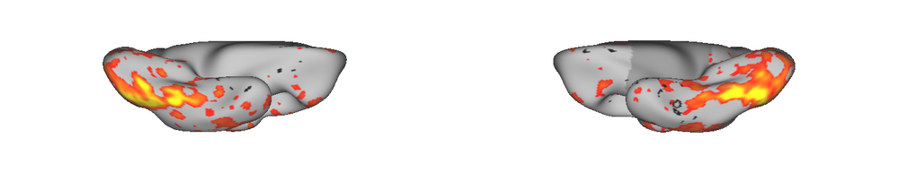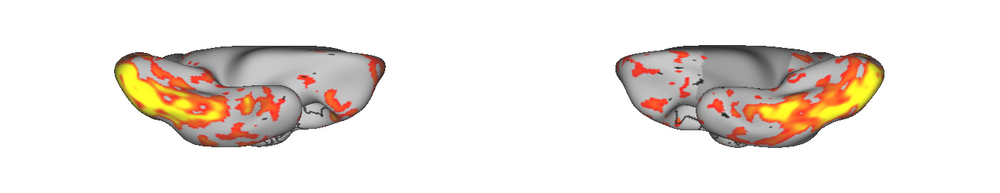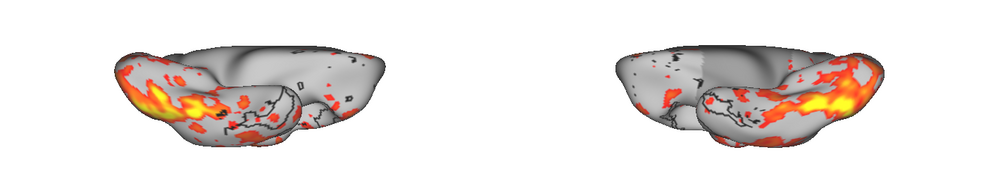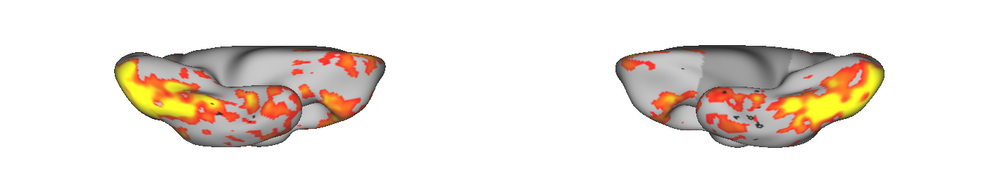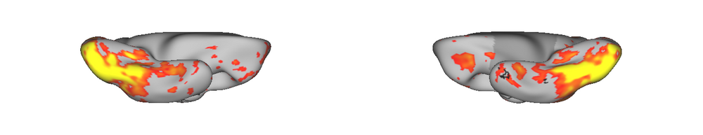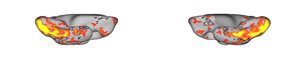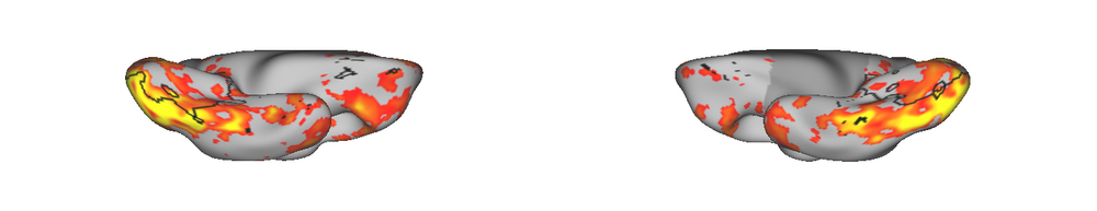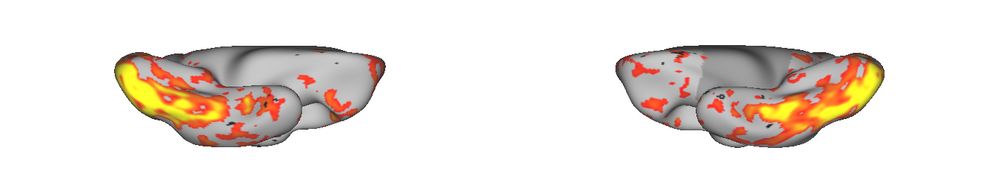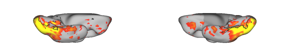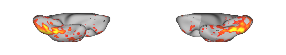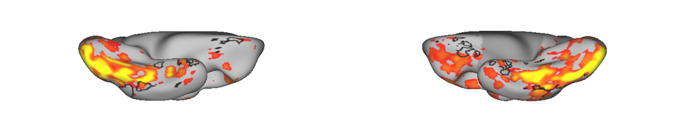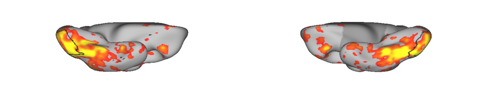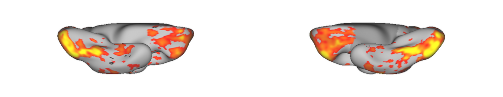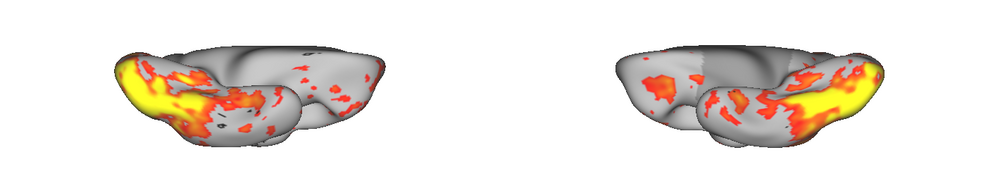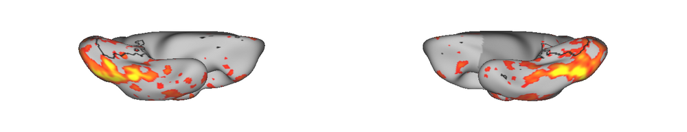 This pattern of lateralized region-level vertex activity during the faces and shapes conditions is also visible when averaging the vertex-level activity across sessions within subject, as seen below.