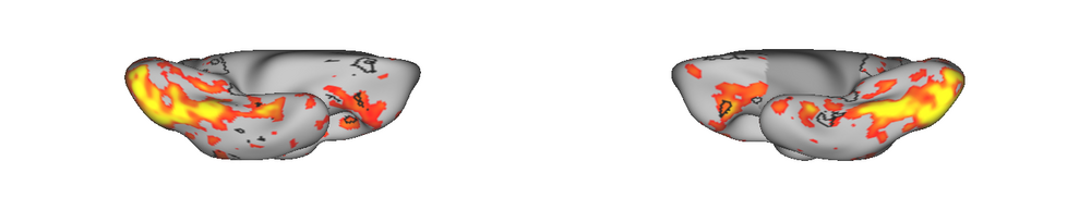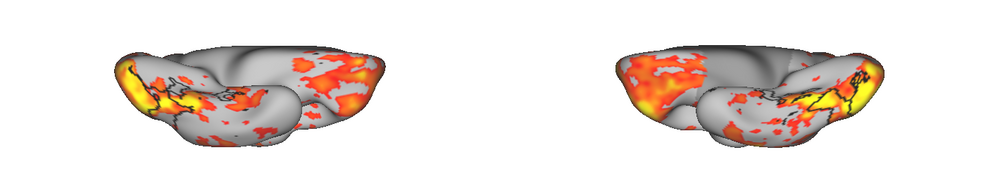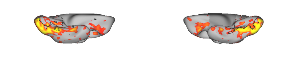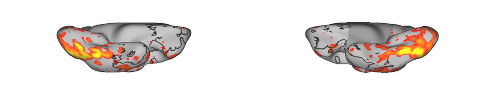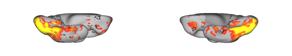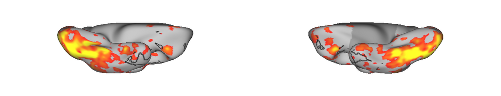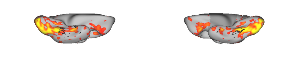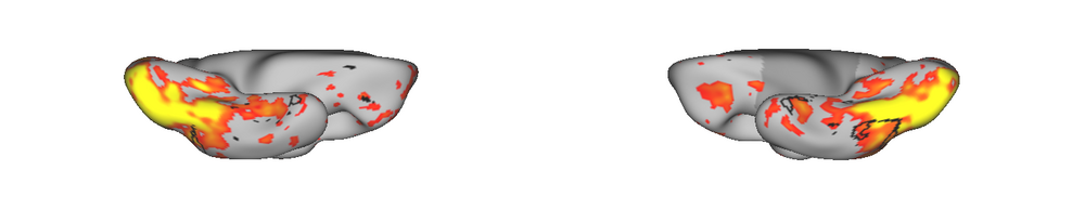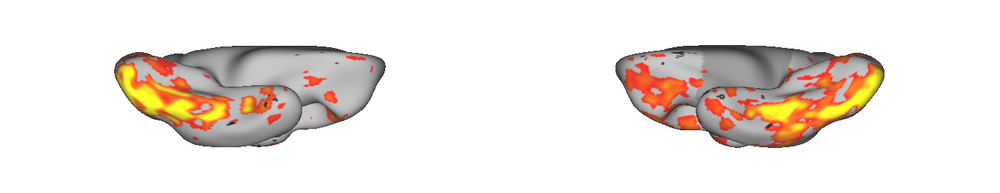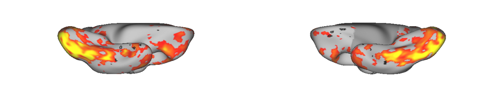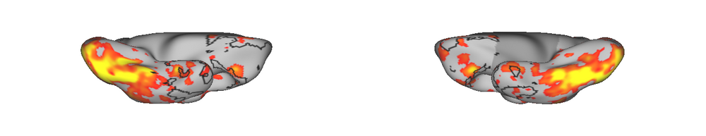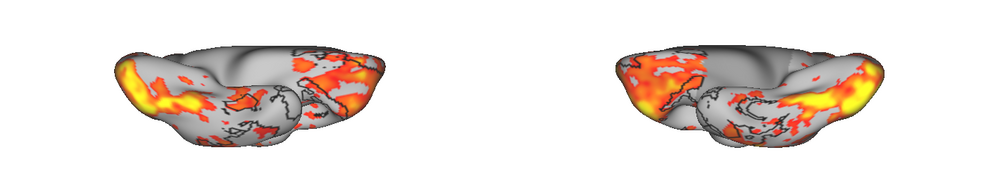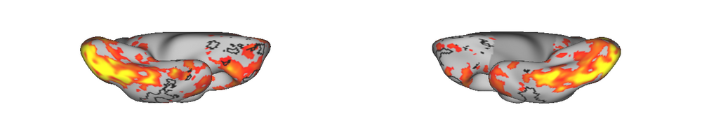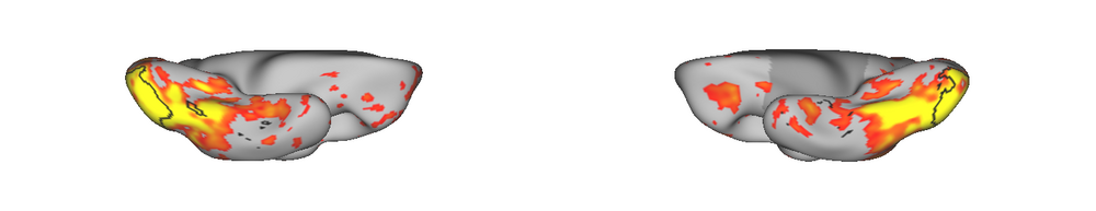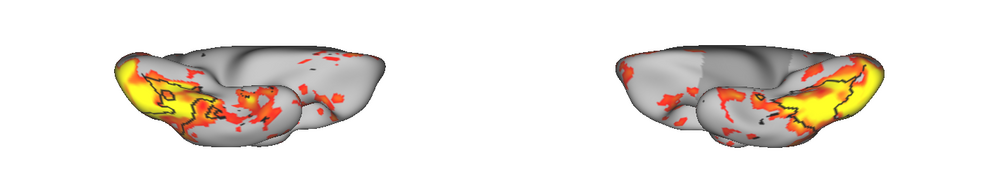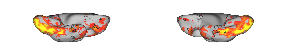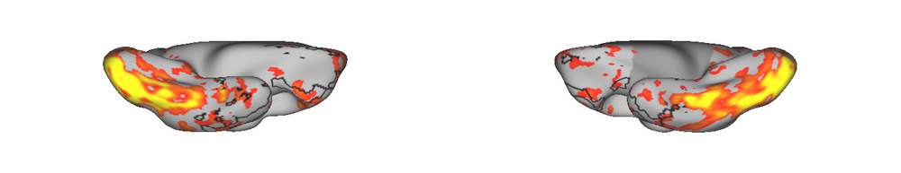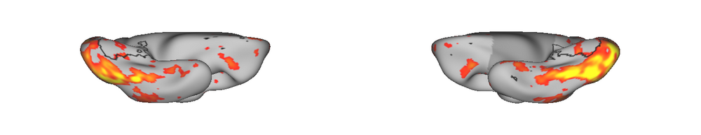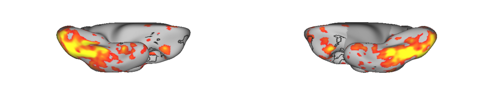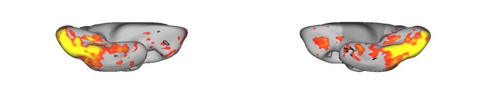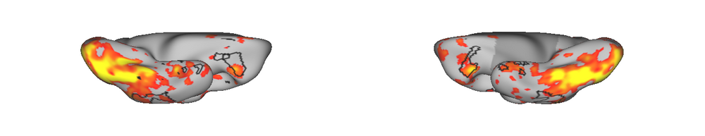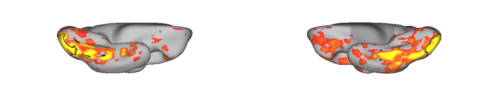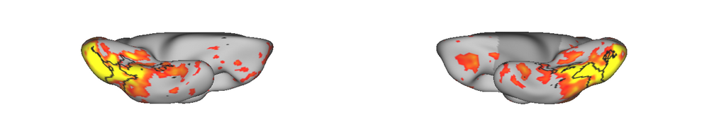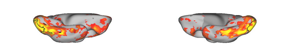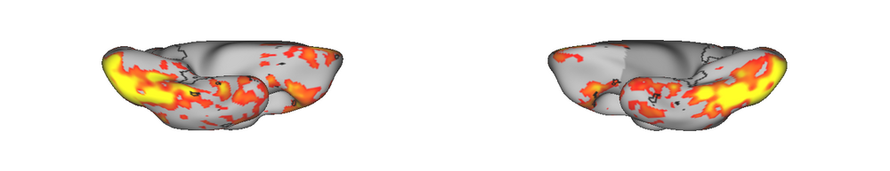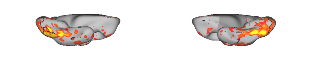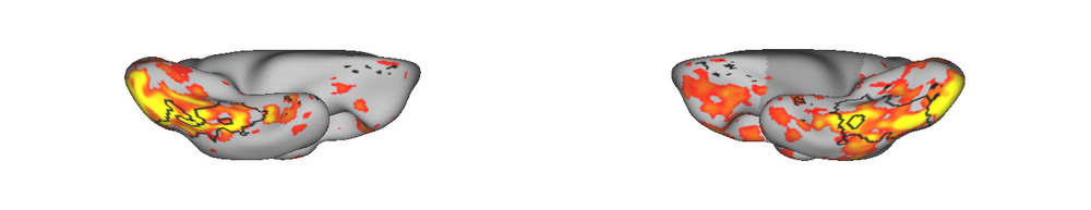 This pattern of lateralized region-level vertex activity during the faces and shapes conditions is also visible when averaging the vertex-level activity across sessions within subject, as seen below.