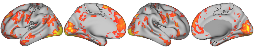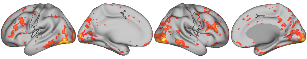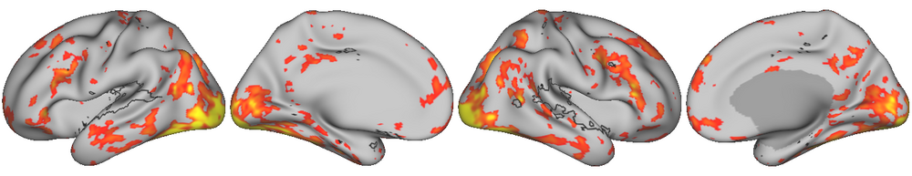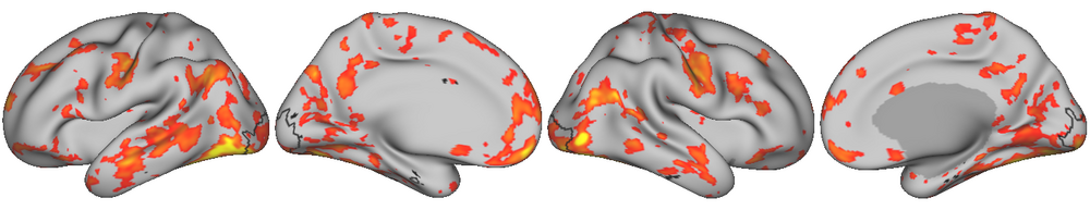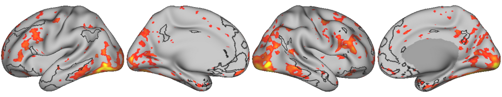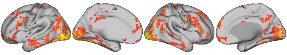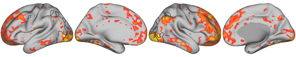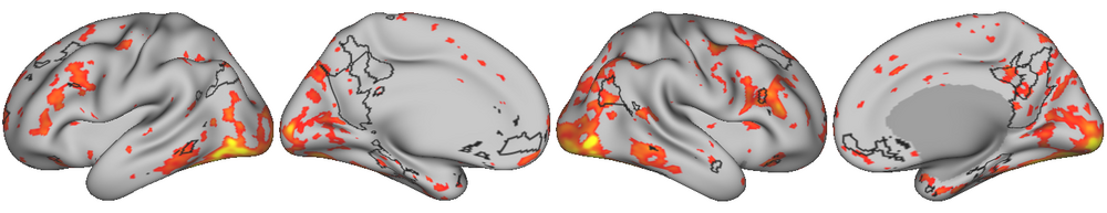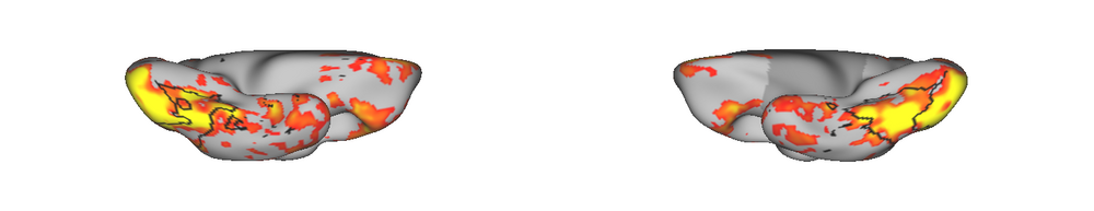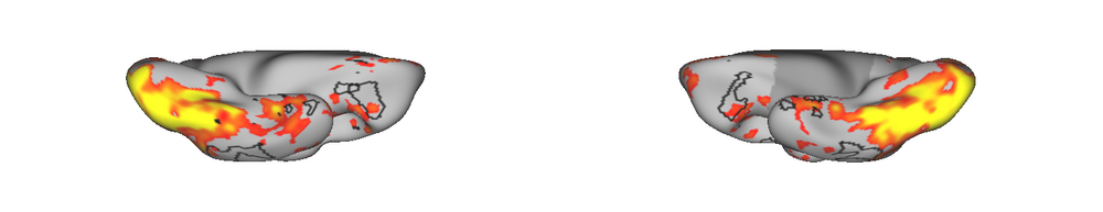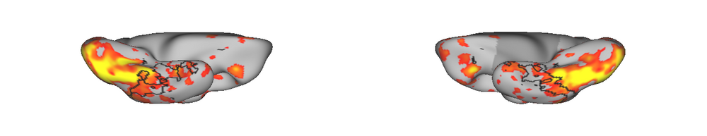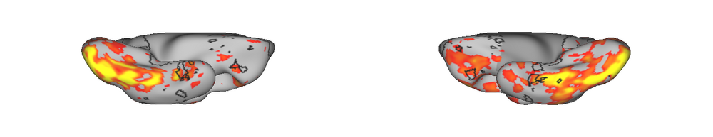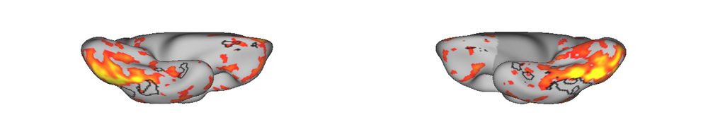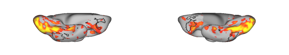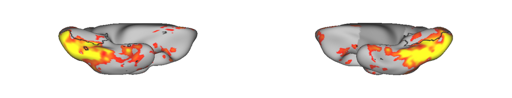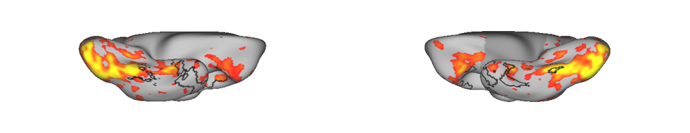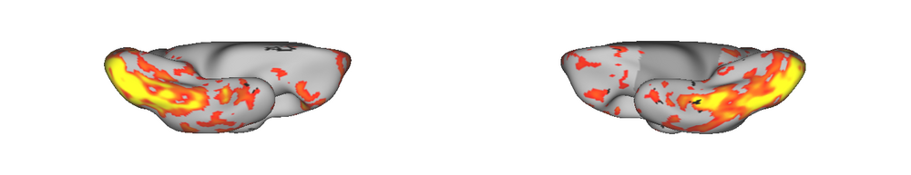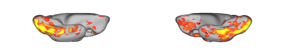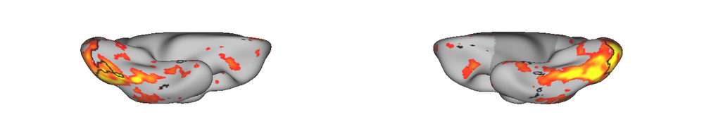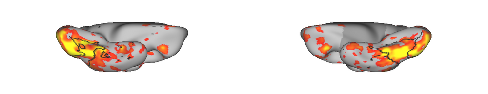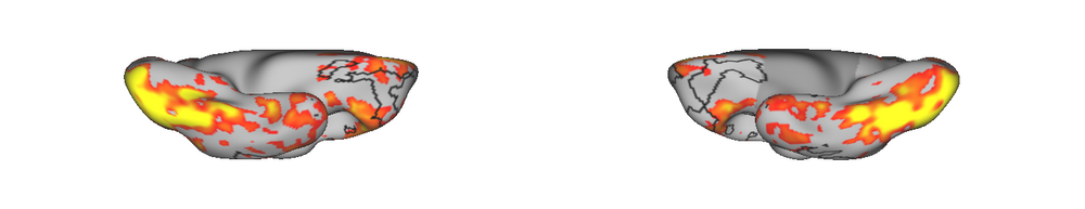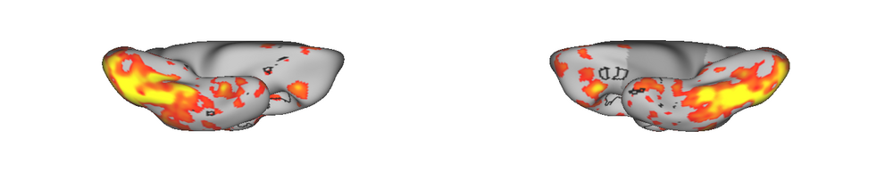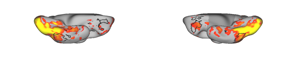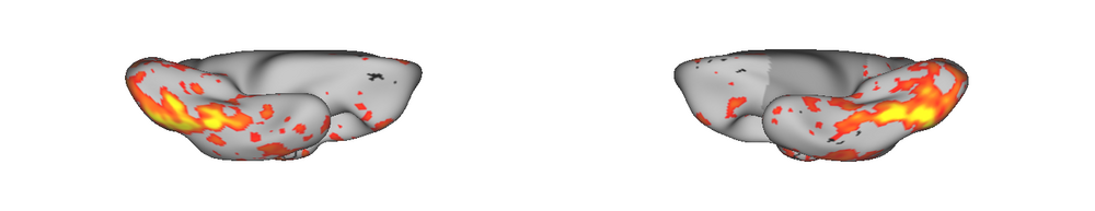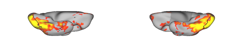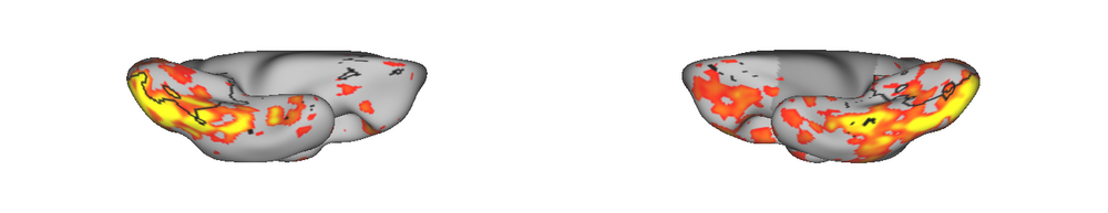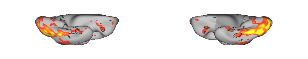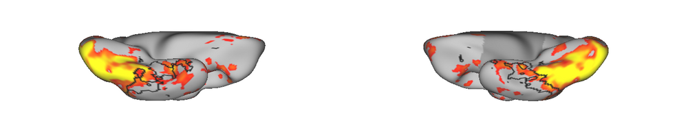 This pattern of lateralized region-level vertex activity during the faces and shapes conditions is also visible when averaging the vertex-level activity across sessions within subject, as seen below.