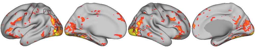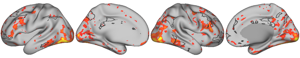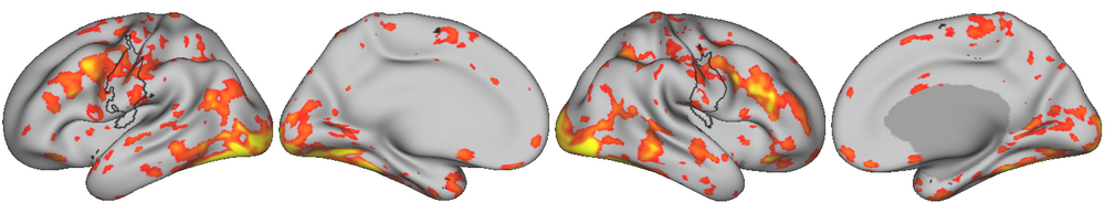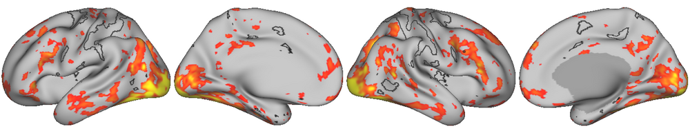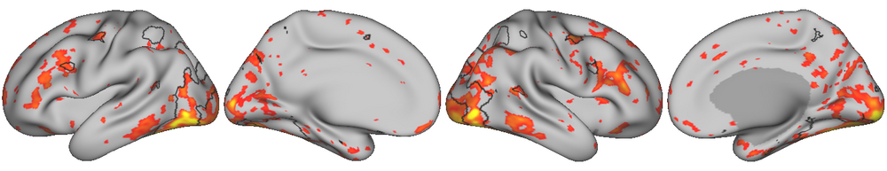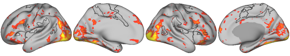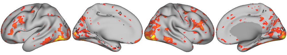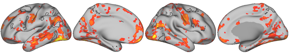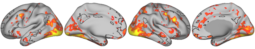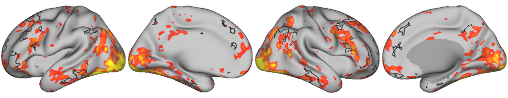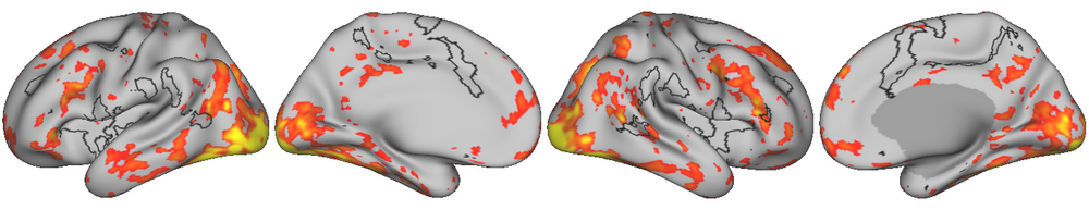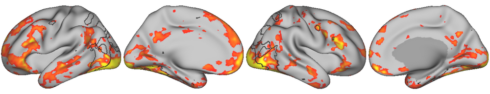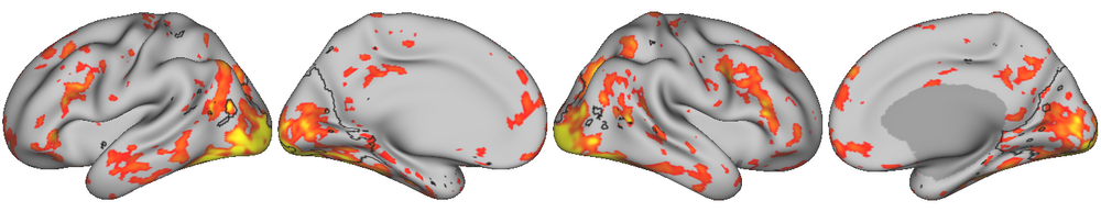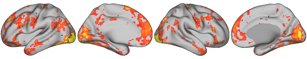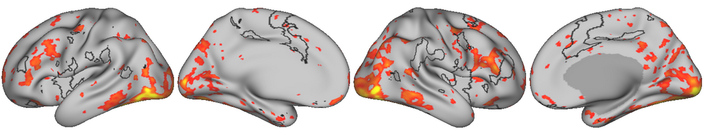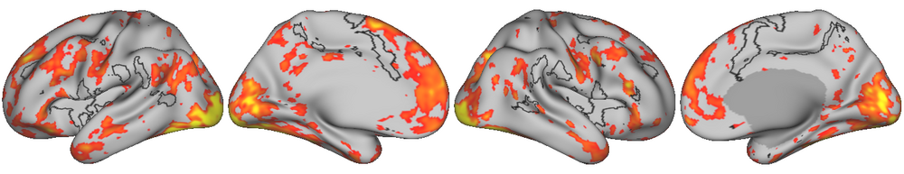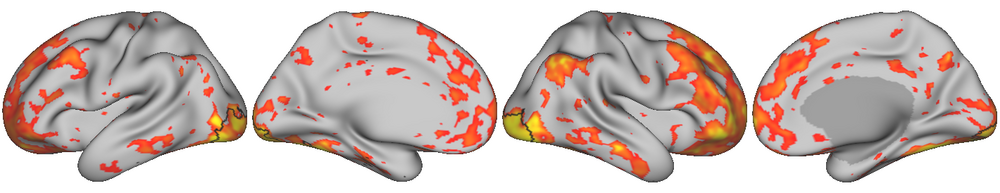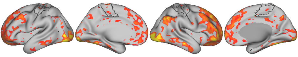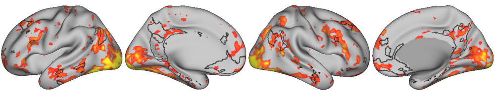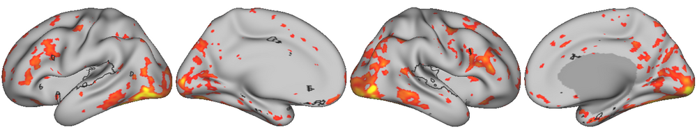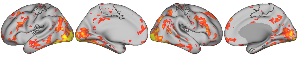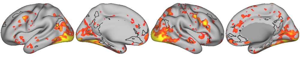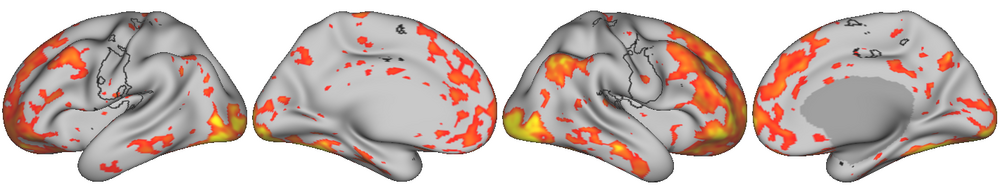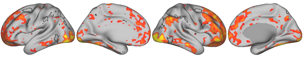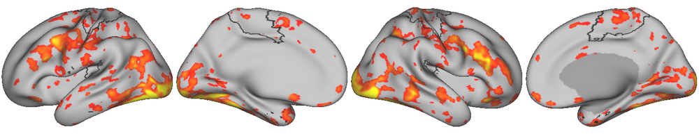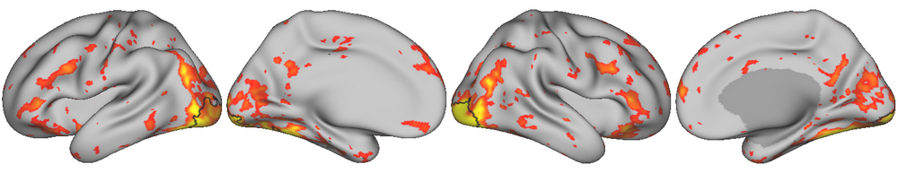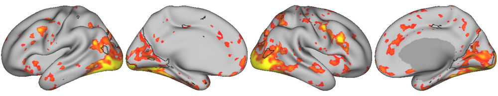 This pattern of lateralized region-level vertex activity during the faces and shapes conditions is also visible when averaging the vertex-level activity across sessions within subject, as seen below.