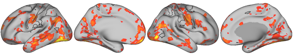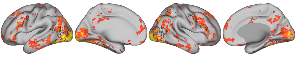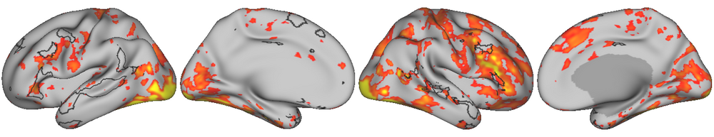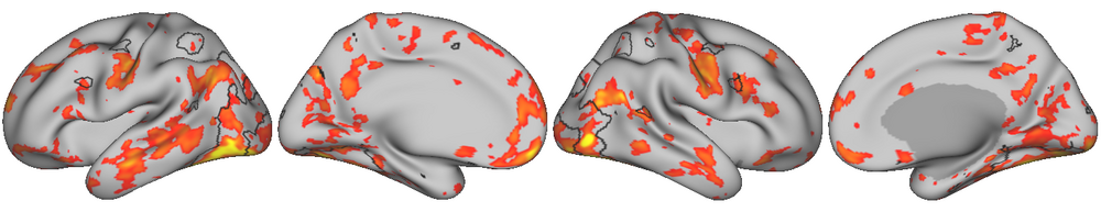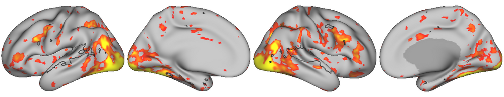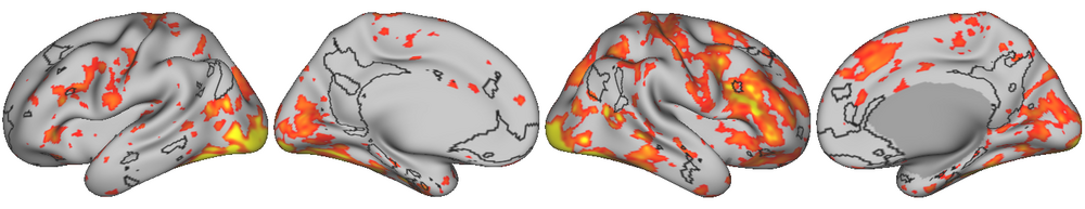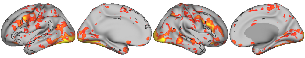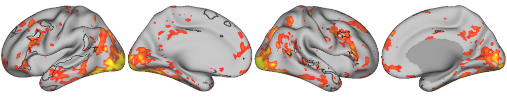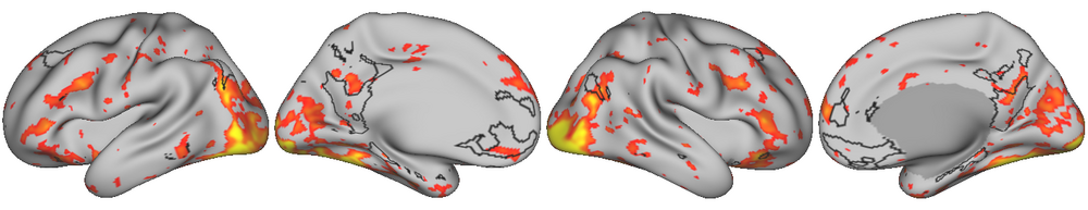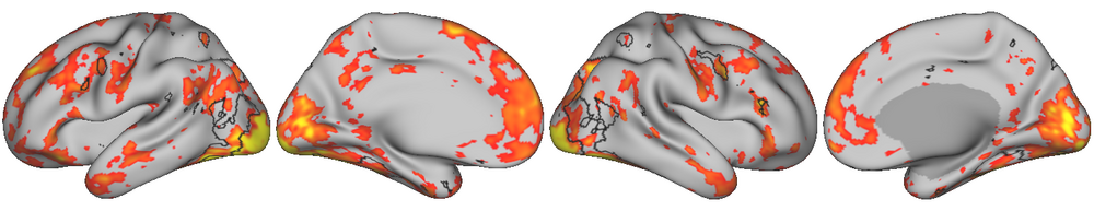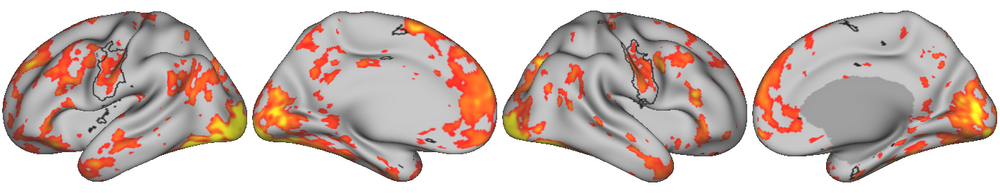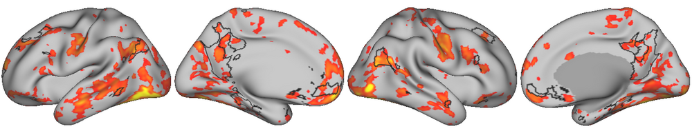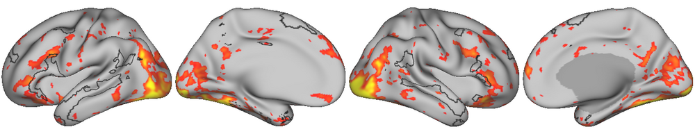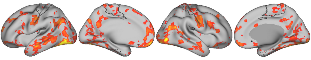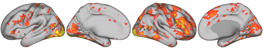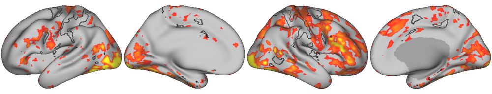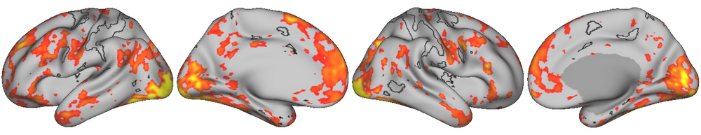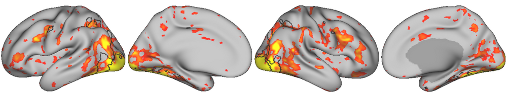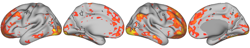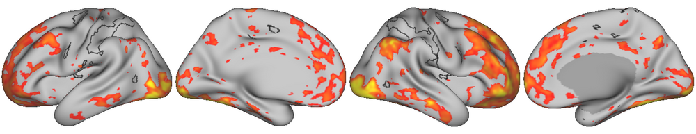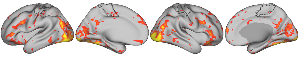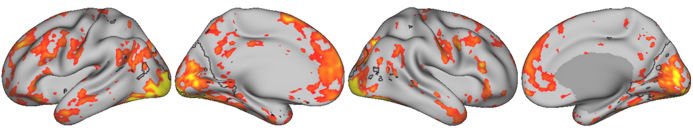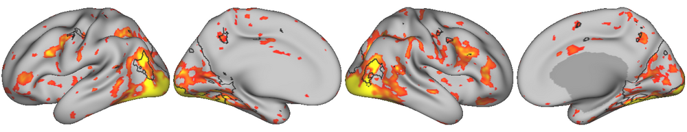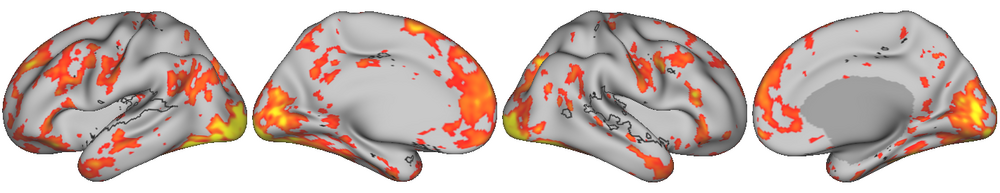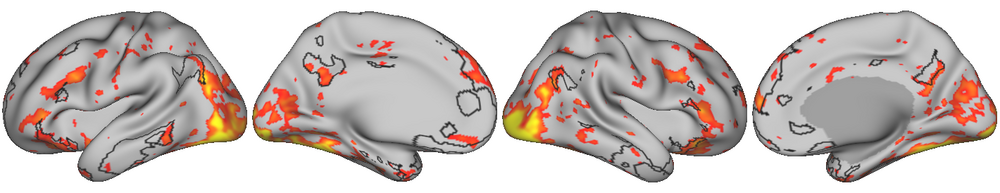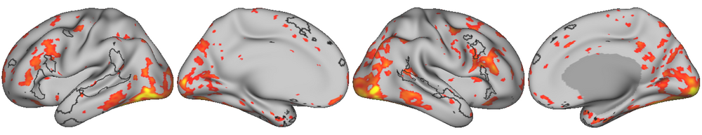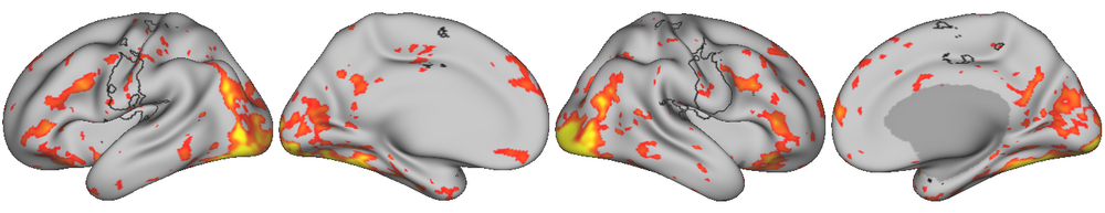 This pattern of lateralized region-level vertex activity during the faces and shapes conditions is also visible when averaging the vertex-level activity across sessions within subject, as seen below.