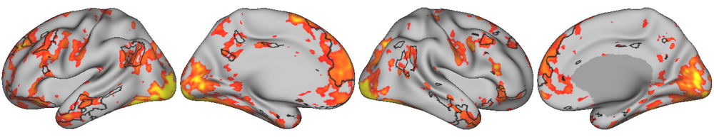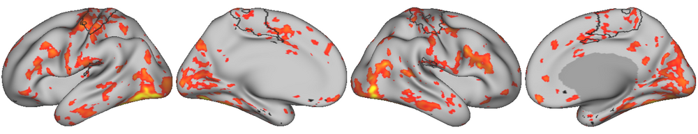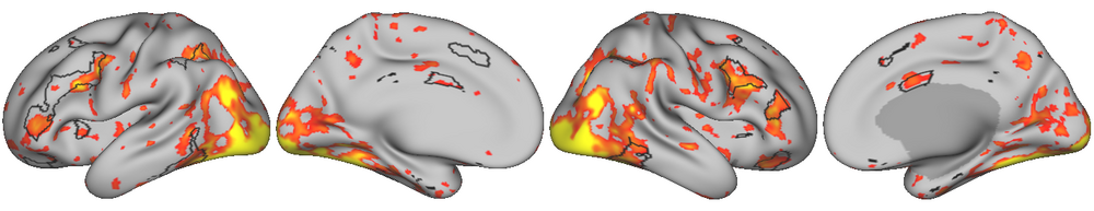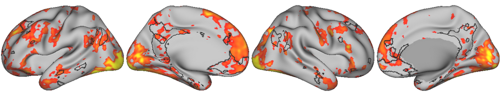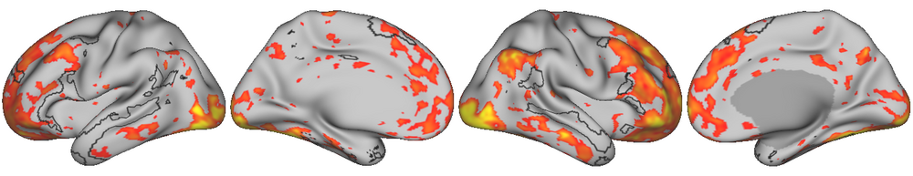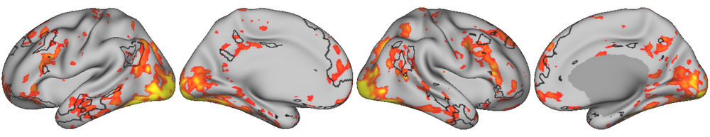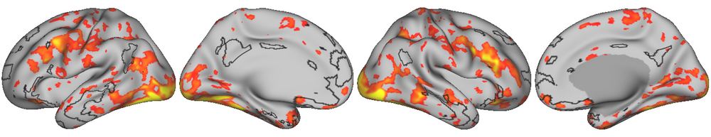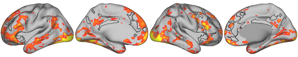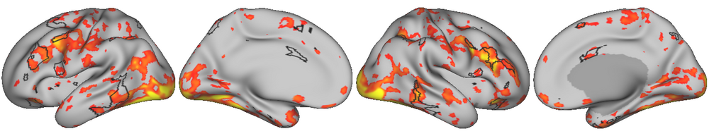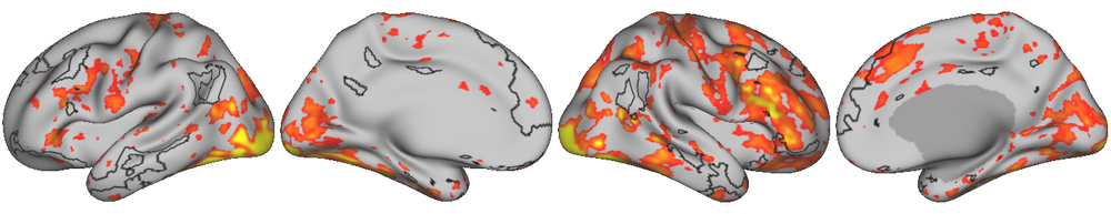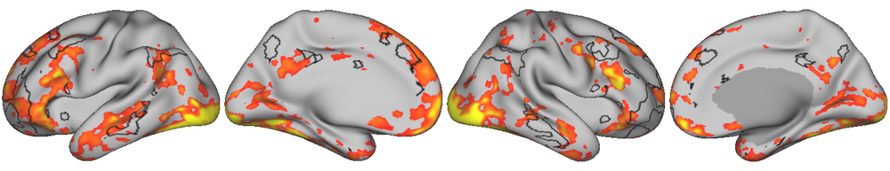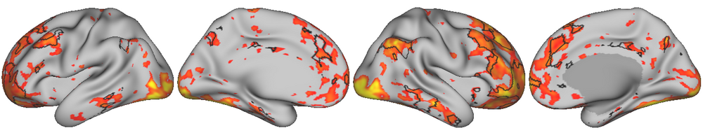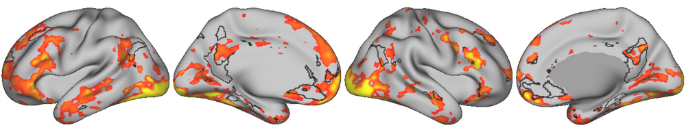 Observations - Boundary-Activity Overlap. The boundary-activity overlays reveal that the ‘emotion processing’ activity observed is well aligned with the boundaries of the networks. It is important to highlight that the network boundaries were defined using independent resting-state data. The fact that the activity observed during the emotion processing task aligns well with the boundaries of the networks is a strong indicator that the networks are capturing meaningful brain activity relevant to task-based functioning. Furthermore, the networks that show elevated activity as illustrated by the vertex activity plots (VIS-C and dATN-B in these subject-session examples) encapsulate most of the ‘emotion processing’ activity.