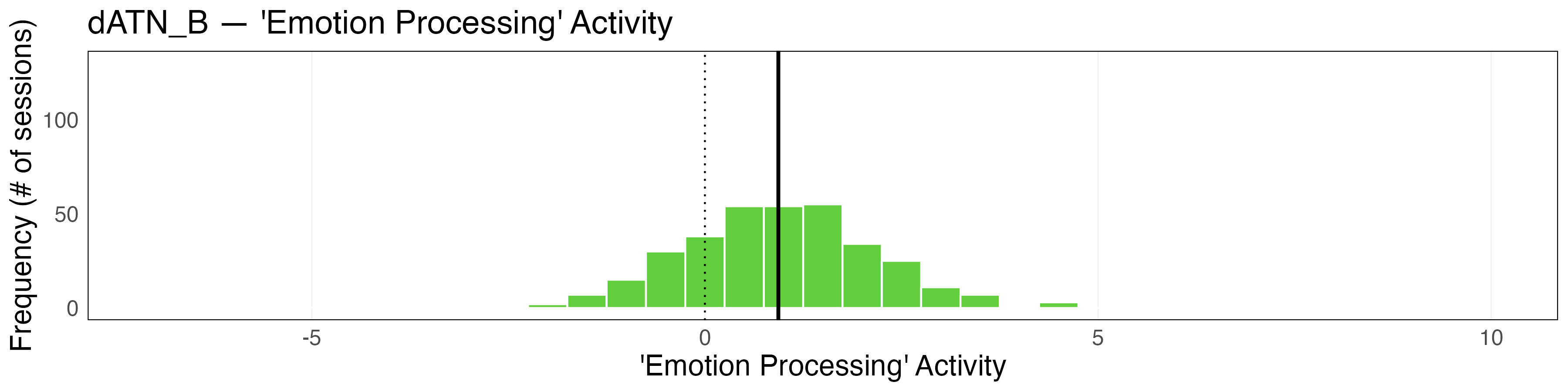Dorsal Attention Network B. There is limited between-subject variability within dorsal attention network B (dATN-B). These between-subject variability plots illustrate that there is almost as much within-subject variability as there is between subject — making it clear why the ICC for activity within this network is poor.