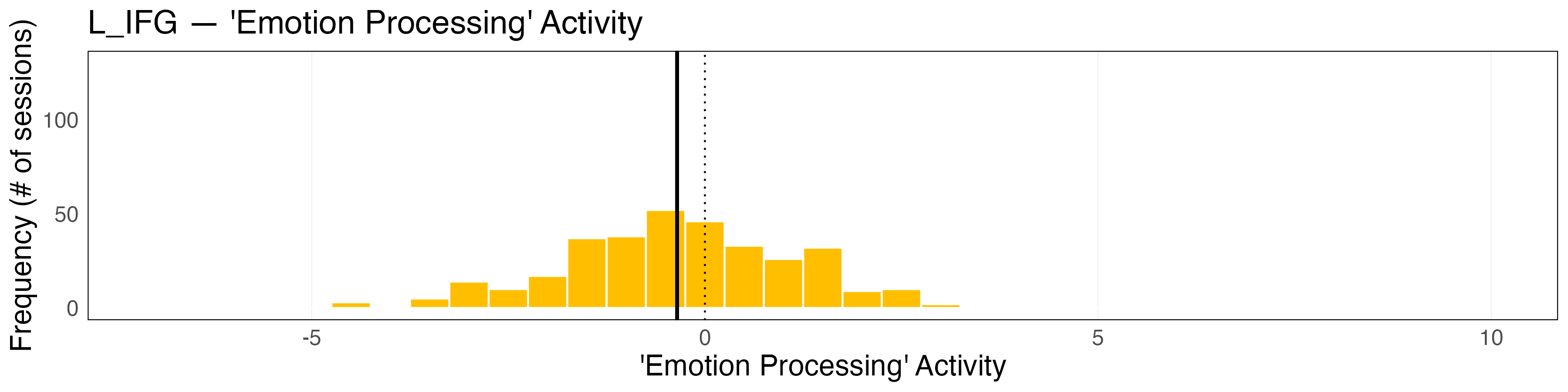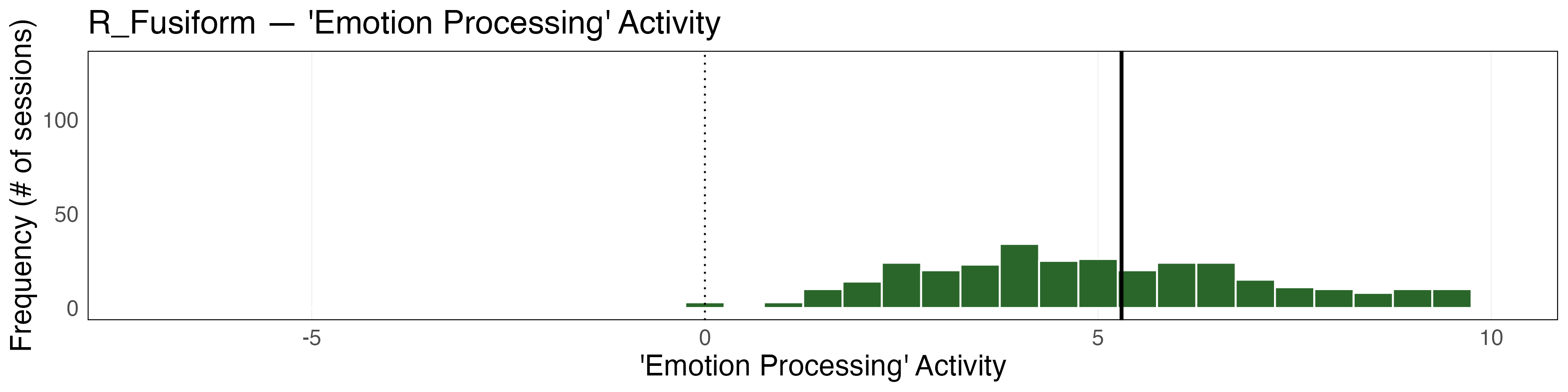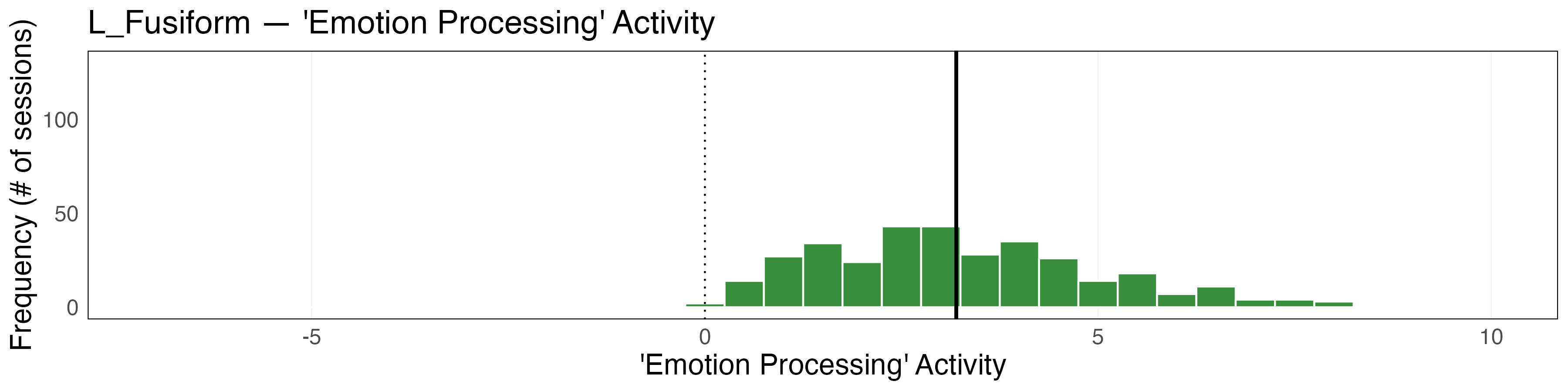 Left Fusiform. The left fusiform shows a similar pattern of between-subject variability as the right fusiform, though exhibits slightly lower ‘emotion processing’ activity in general.